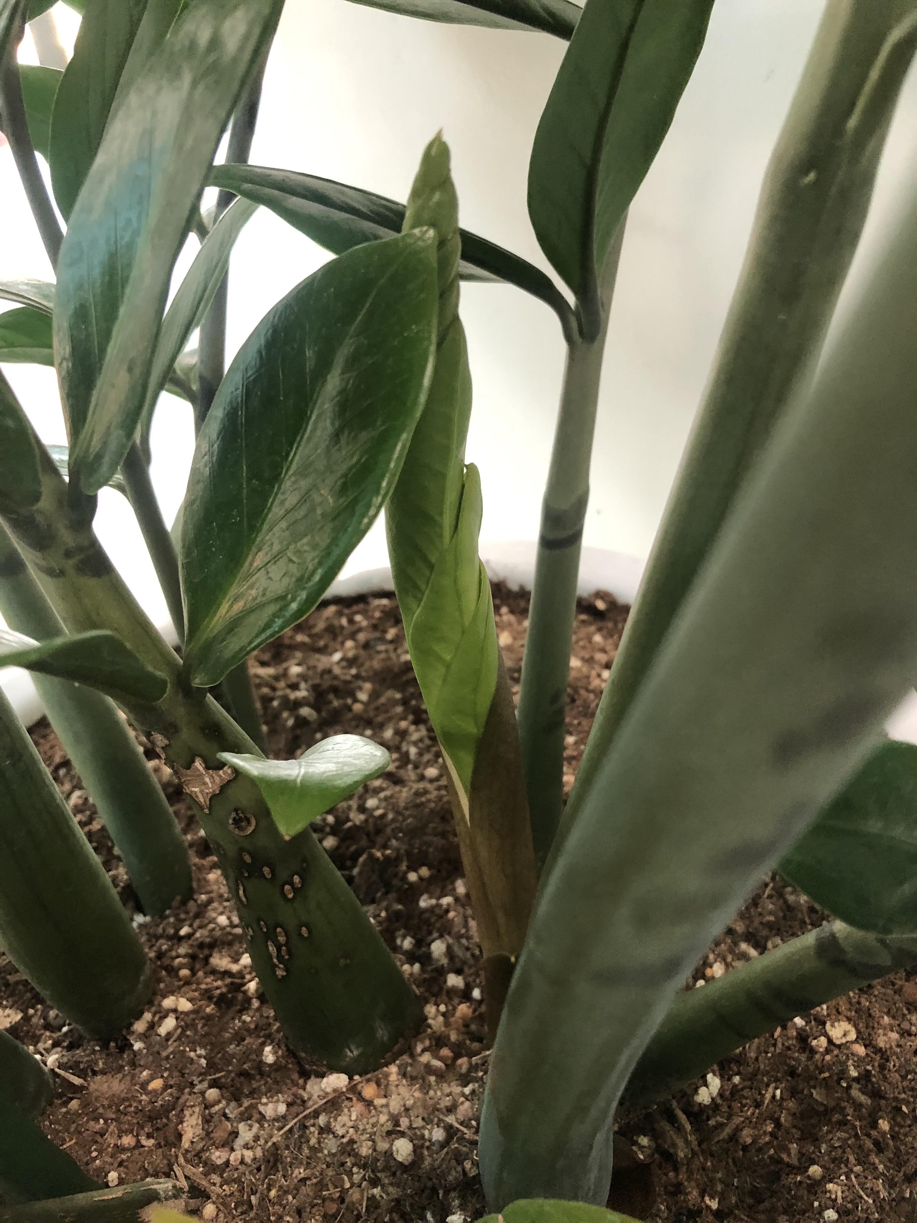 새로 난 금전수 잎은 연두색의 빛이 반짝반짝이지만