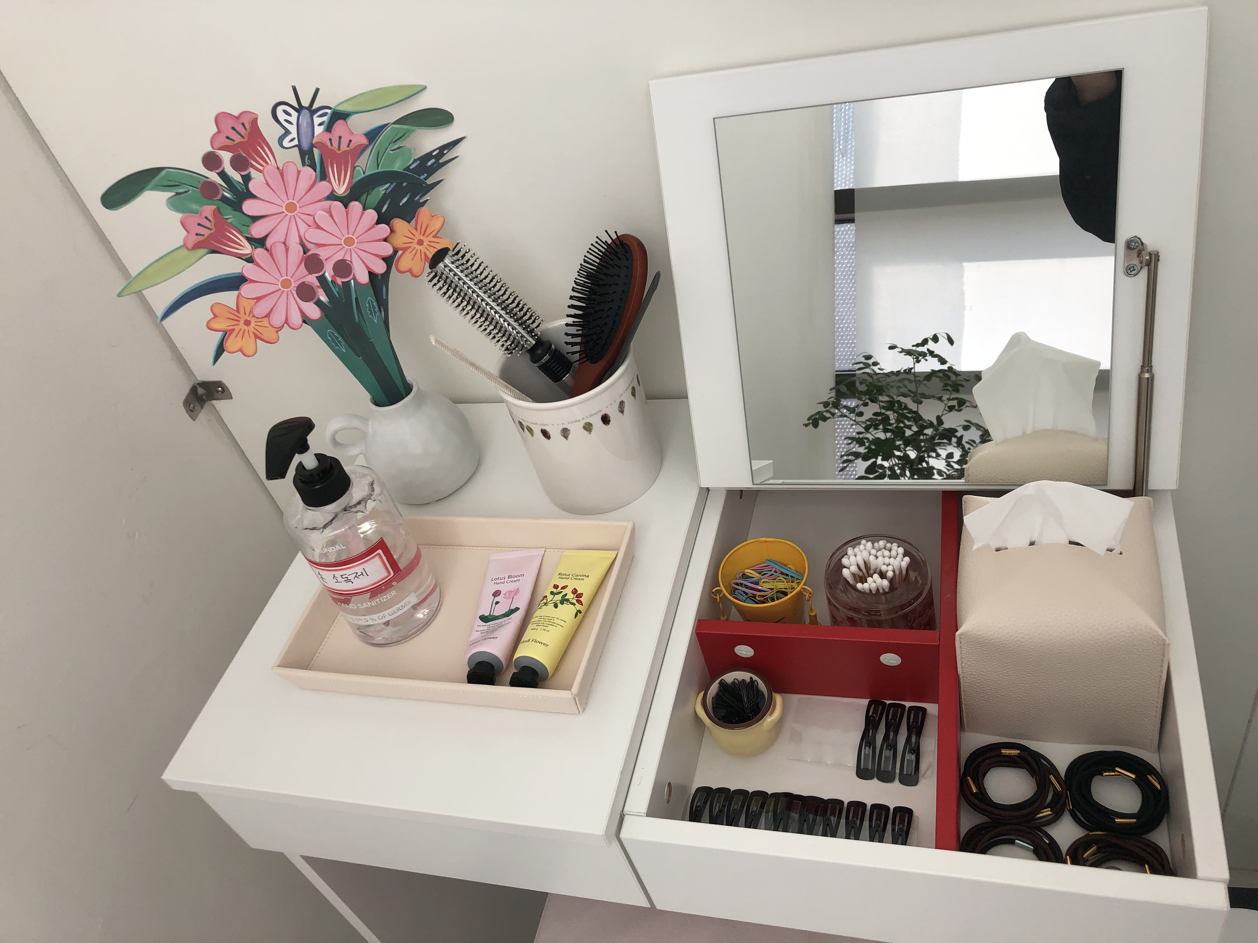 손소독제와 핸드크림 아래 받침대도 바꾸었는데요