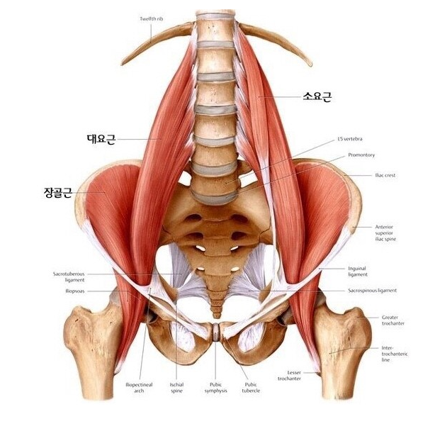 장요근은 골반의 전방경사도 만들지만 주 역할은 고관절 굴곡입니다